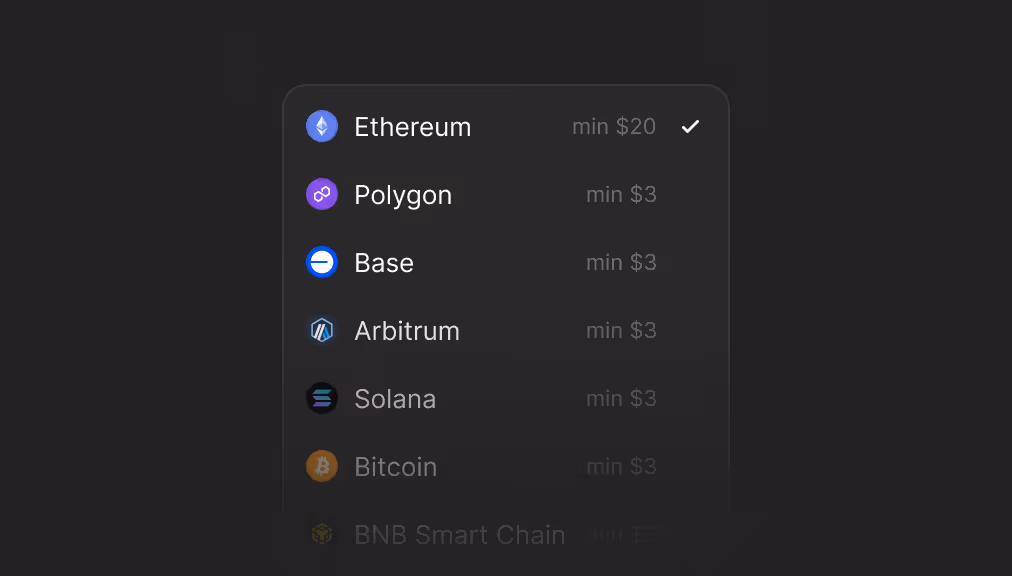 Fun's compliance first stablecoin gateways provide a deposit address for on-ramping or offramping. If you’re exploring stablecoin payments, you need more than a deposit address to convert users. Fun’s SDK enables users to use any payment method to transfer stablecoins.